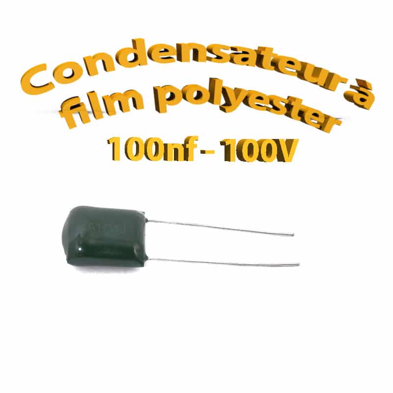 Condensateur à film polyester 100nf – 100Volt – Code:104
