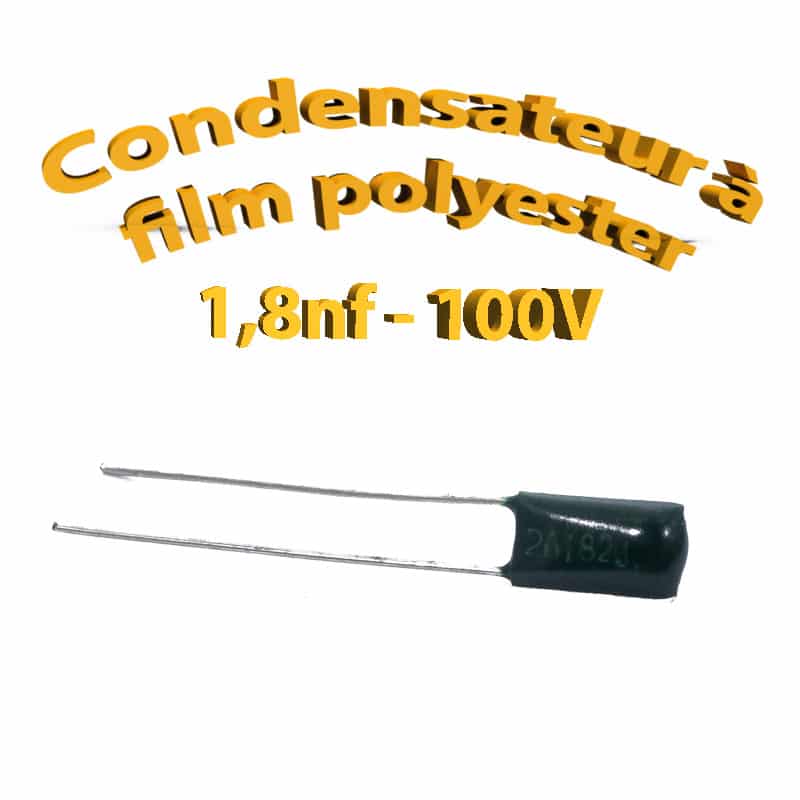 Condensateur à film polyester 1,8nf – 100Volt – Code:182