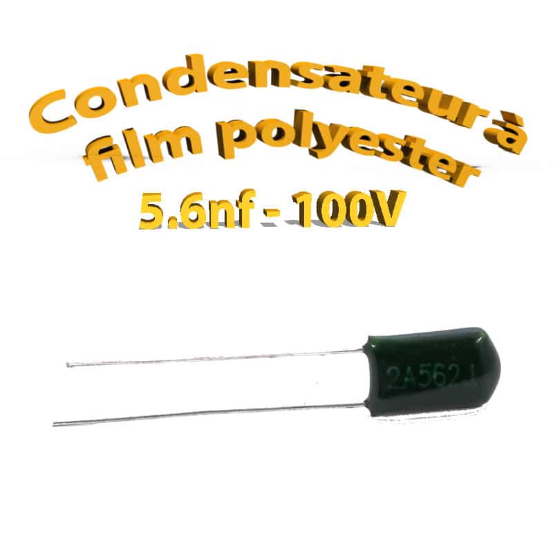 Condensateur à film polyester 5,6nf – 100Volt – Code:562
