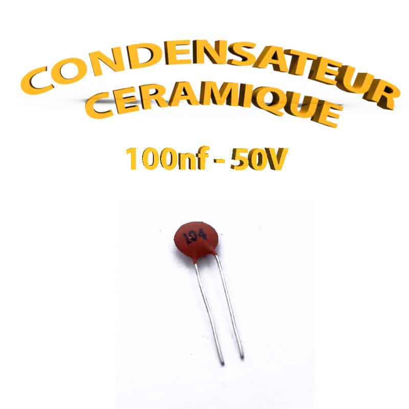 Condensateur Céramique 100nf – 104 – 50V – pas: 3mm
