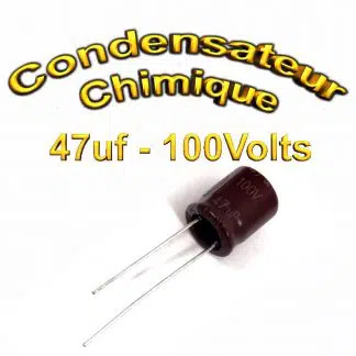 Très présent en électronique le Condensateur chimique 100uF 100V peut être polarisé ou non et sert généralement dans les applications suivantes: son utilisation première est d’emmagasiner temporairement des charges électriques, il sert aussi dans les circuit de synchronisation électronique (TV, hifi), dans les filtres électroniques ainsi que pour la transmission de signaux et dans bien d’autre application
