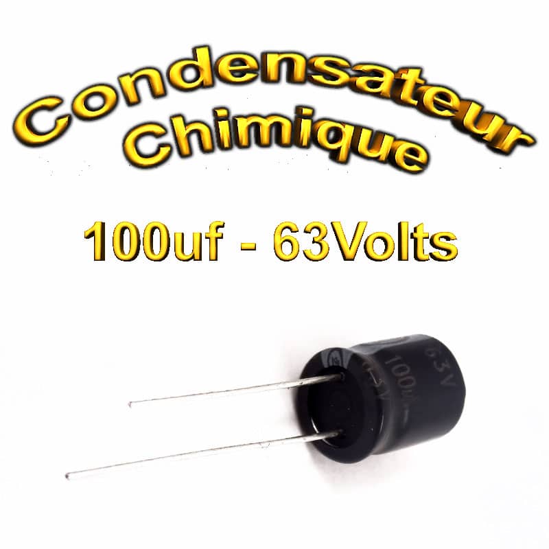 Très présent en électronique le Condensateur chimique 100uF 63V peut être polarisé ou non et sert généralement dans les applications suivantes: son utilisation première est d’emmagasiner temporairement des charges électriques, il sert aussi dans les circuit de synchronisation électronique (TV, hifi), dans les filtres électroniques ainsi que pour la transmission de signaux et dans bien d’autre application