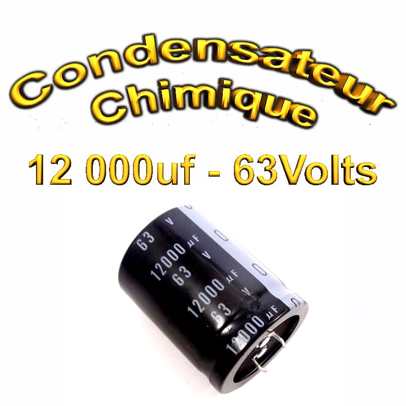Très présent en électronique le Condensateur chimique 12 000uF 63V peut être polarisé ou non et sert généralement dans les applications suivantes: son utilisation première est d’emmagasiner temporairement des charges électriques, il sert aussi dans les circuit de synchronisation électronique (TV, hifi), dans les filtres électroniques ainsi que pour la transmission de signaux et dans bien d’autre application