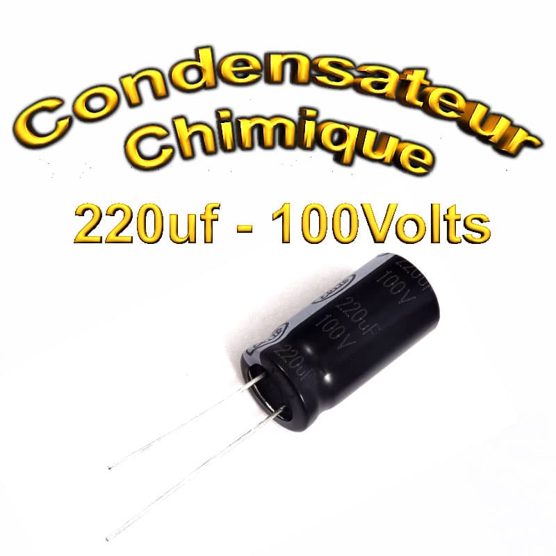 Très présent en électronique le Condensateur chimique 220uF 100V peut être polarisé ou non et sert généralement dans les applications suivantes: son utilisation première est d’emmagasiner temporairement des charges électriques, il sert aussi dans les circuit de synchronisation électronique (TV, hifi), dans les filtres électroniques ainsi que pour la transmission de signaux et dans bien d’autre application