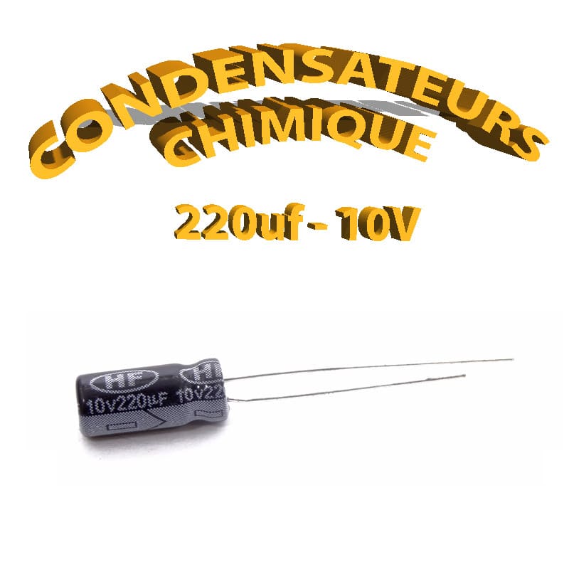 Très présent en électronique le Condensateur chimique 220uF 10V peut être polarisé ou non et sert généralement dans les applications suivantes: son utilisation première est d’emmagasiner temporairement des charges électriques, il sert aussi dans les circuit de synchronisation électronique (TV, hifi), dans les filtres électroniques ainsi que pour la transmission de signaux et dans bien d’autre application