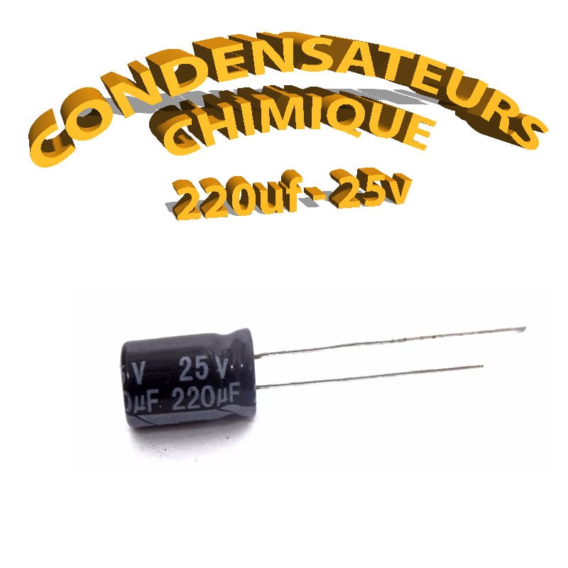 Très présent en électronique le Condensateur chimique 220uF 25V peut être polarisé ou non et sert généralement dans les applications suivantes: son utilisation première est d’emmagasiner temporairement des charges électriques, il sert aussi dans les circuit de synchronisation électronique (TV, hifi), dans les filtres électroniques ainsi que pour la transmission de signaux et dans bien d’autre application