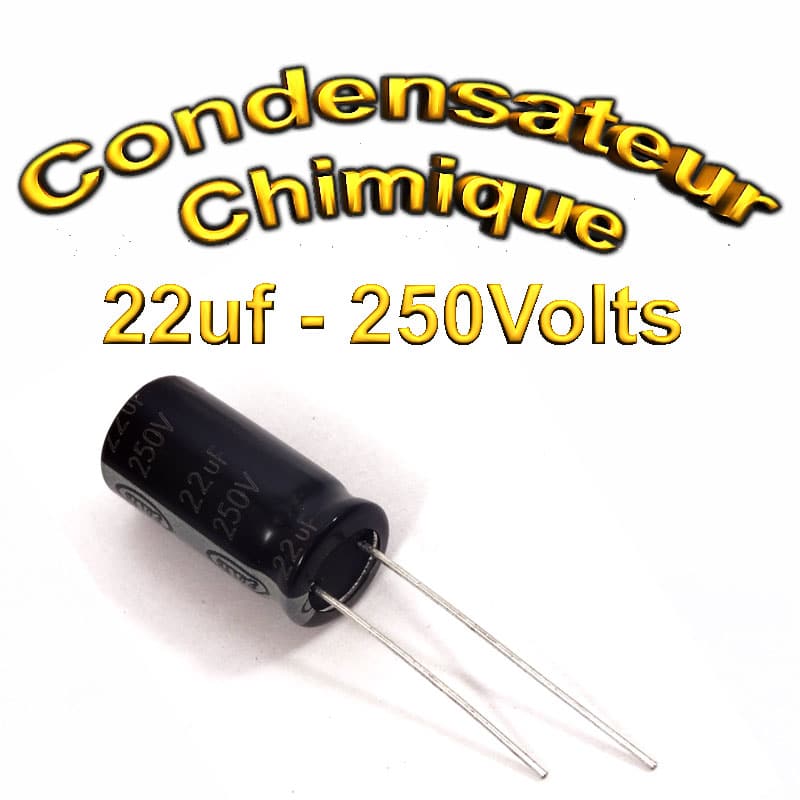 Très présent en électronique le Condensateur chimique 22uF 250V peut être polarisé ou non et sert généralement dans les applications suivantes: son utilisation première est d’emmagasiner temporairement des charges électriques, il sert aussi dans les circuit de synchronisation électronique (TV, hifi), dans les filtres électroniques ainsi que pour la transmission de signaux et dans bien d’autre application
