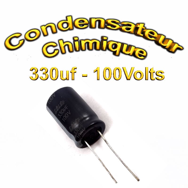Très présent en électronique le Condensateur chimique 330uF 100V peut être polarisé ou non et sert généralement dans les applications suivantes: son utilisation première est d’emmagasiner temporairement des charges électriques, il sert aussi dans les circuit de synchronisation électronique (TV, hifi), dans les filtres électroniques ainsi que pour la transmission de signaux et dans bien d’autre application