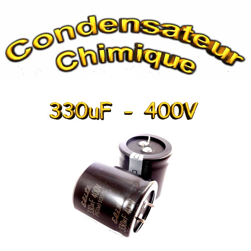 Très présent en électronique le Condensateur chimique 330uF 400V peut être polarisé ou non et sert généralement dans les applications suivantes: son utilisation première est d’emmagasiner temporairement des charges électriques, il sert aussi dans les circuit de synchronisation électronique (TV, hifi), dans les filtres électroniques ainsi que pour la transmission de signaux et dans bien d’autre application