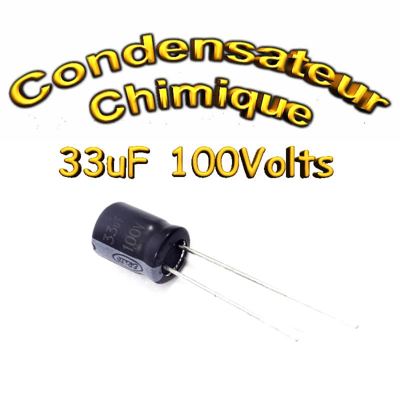 Très présent en électronique le Condensateur chimique 33uF 100V peut être polarisé ou non et sert généralement dans les applications suivantes: son utilisation première est d’emmagasiner temporairement des charges électriques, il sert aussi dans les circuit de synchronisation électronique (TV, hifi), dans les filtres électroniques ainsi que pour la transmission de signaux et dans bien d’autre application