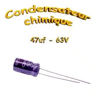 Très présent en électronique le Condensateur chimique 47uF 450V peut être polarisé ou non et sert généralement dans les applications suivantes: son utilisation première est d’emmagasiner temporairement des charges électriques, il sert aussi dans les circuit de synchronisation électronique (TV, hifi), dans les filtres électroniques ainsi que pour la transmission de signaux et dans bien d’autre application