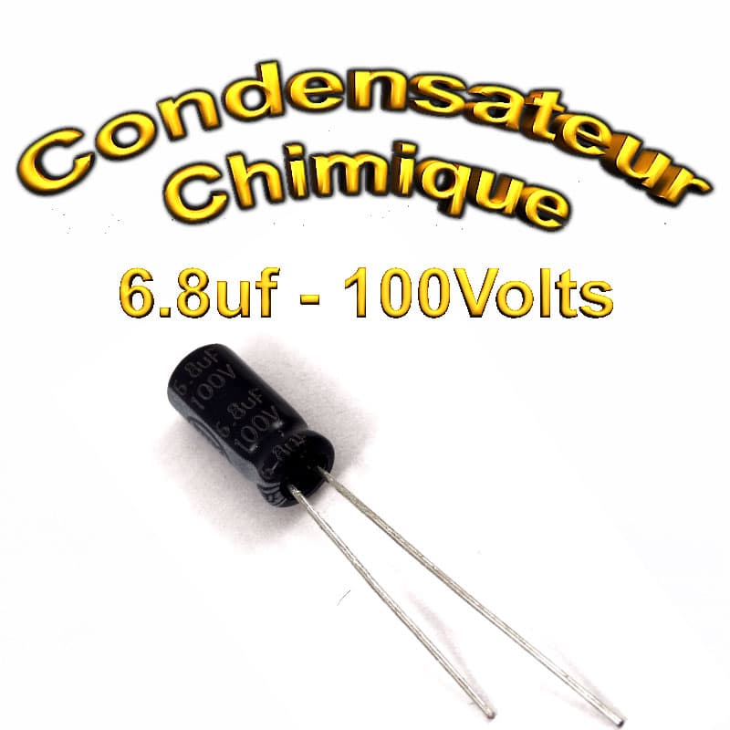 Très présent en électronique le Condensateur chimique 6,8uF 100V peut être polarisé ou non et sert généralement dans les applications suivantes: son utilisation première est d’emmagasiner temporairement des charges électriques, il sert aussi dans les circuit de synchronisation électronique (TV, hifi), dans les filtres électroniques ainsi que pour la transmission de signaux et dans bien d’autre application