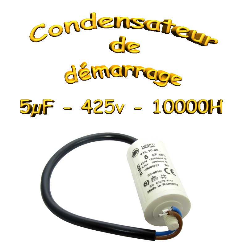 Condensateur de démarrage – 5uF – 425 Vdc – 10 000H – Ø28x55mm