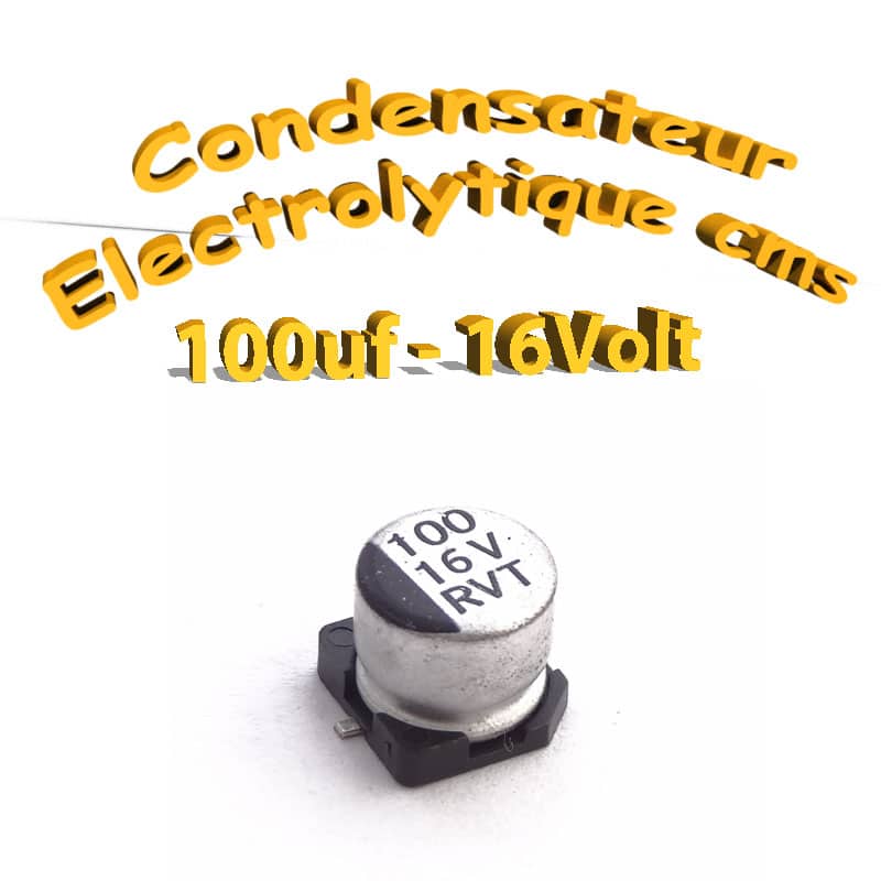 - Nom du produit: Condensateur électrolytique CMS – SMD 100uF 16V