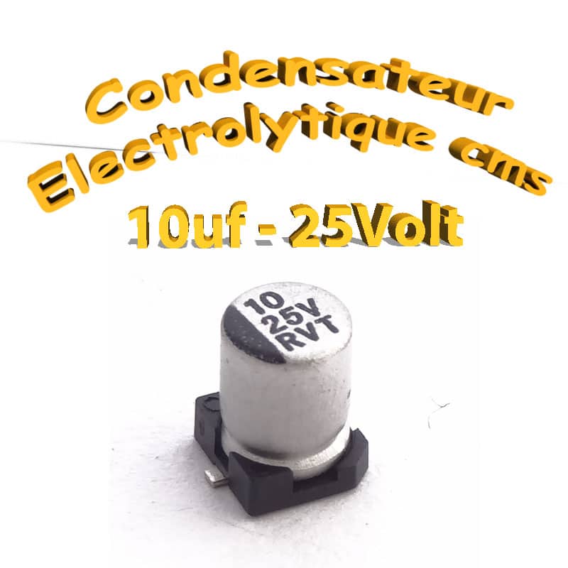 - Nom du produit: Condensateur électrolytique CMS – SMD 10uF 25V