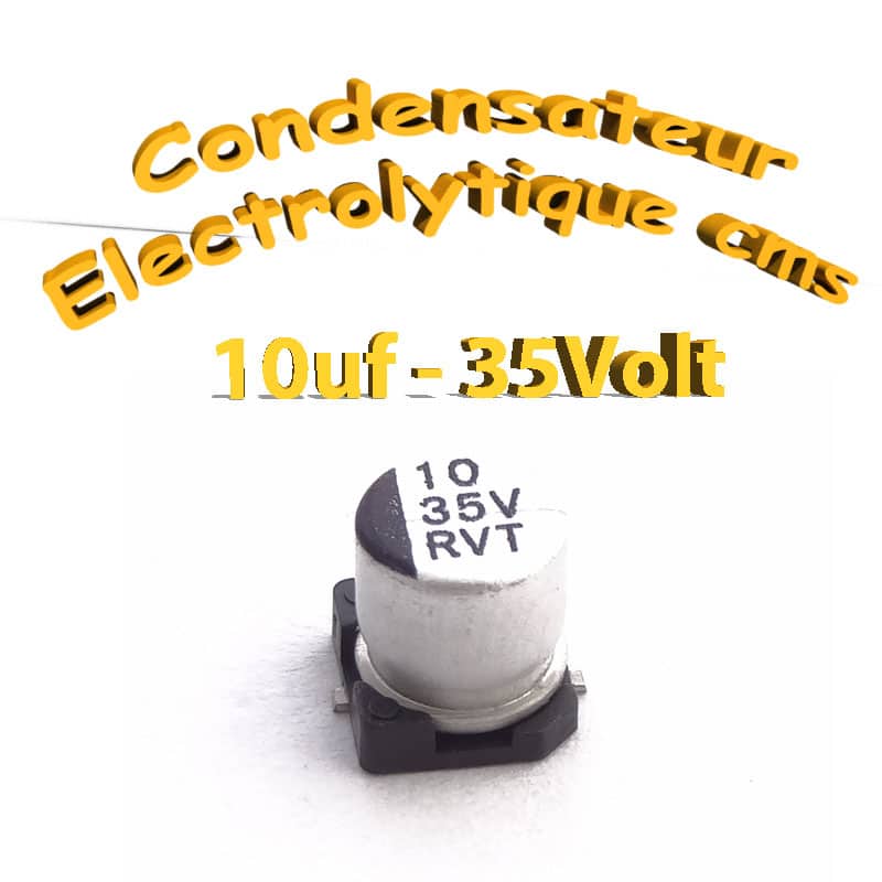 - Nom du produit: Condensateur électrolytique CMS – SMD 10uF 35V