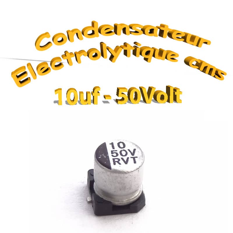 - Nom du produit: Condensateur électrolytique CMS – SMD 10uF 50V