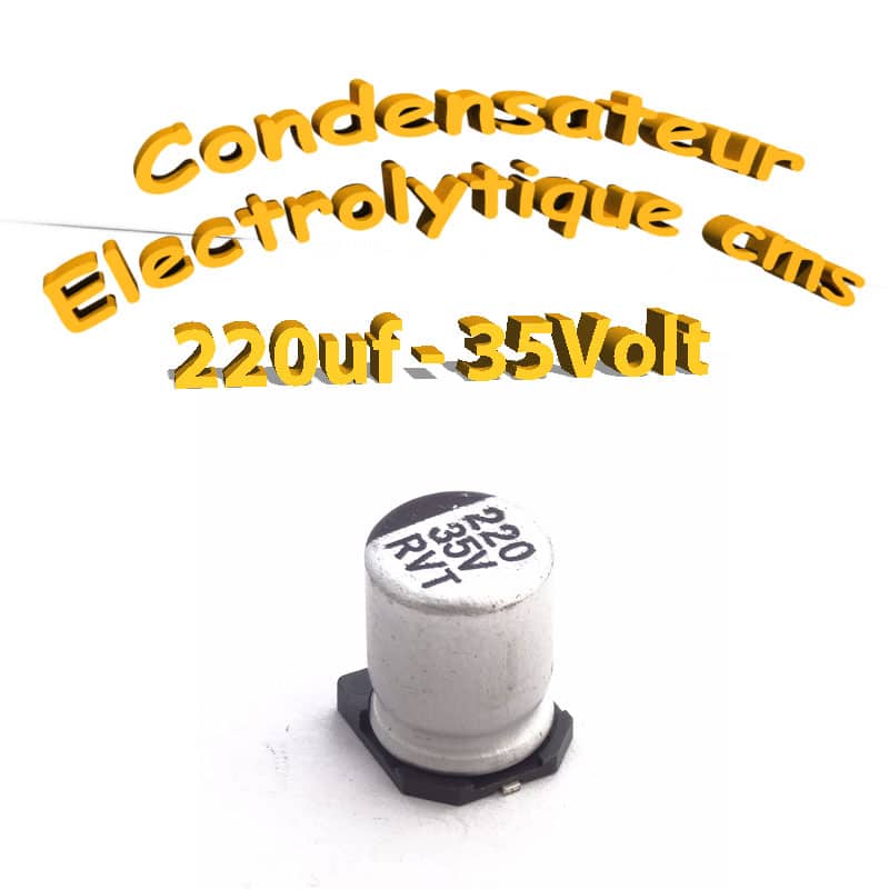 - Nom du produit: Condensateur électrolytique CMS – SMD 220uF 35V
