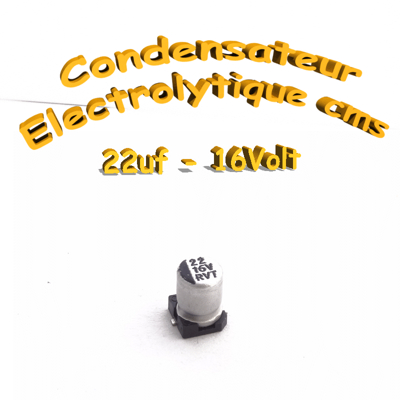 - Nom du produit: Condensateur électrolytique CMS – SMD 22uF 16V