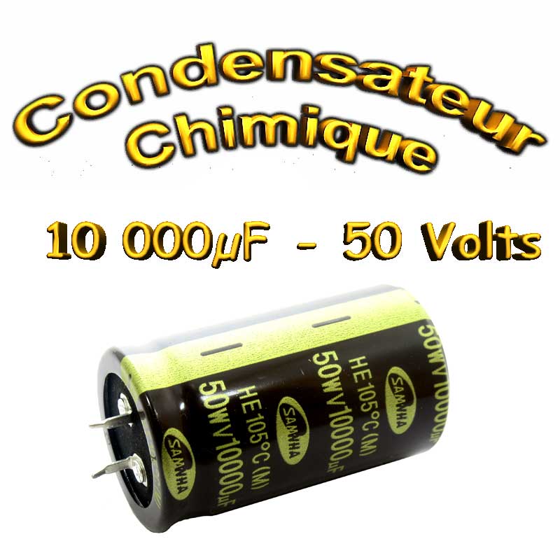 Très présent en électronique le Condensateur chimique 10 000uF 50V peut être polarisé ou non et sert généralement dans les applications suivantes: son utilisation première est d’emmagasiner temporairement des charges électriques, il sert aussi dans les circuit de synchronisation électronique (TV, hifi), dans les filtres électroniques ainsi que pour la transmission de signaux et dans bien d’autre application
