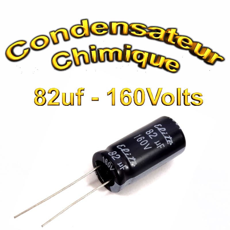 Très présent en électronique le Condensateur chimique 82uF 160V peut être polarisé ou non et sert généralement dans les applications suivantes: son utilisation première est d’emmagasiner temporairement des charges électriques, il sert aussi dans les circuit de synchronisation électronique (TV, hifi), dans les filtres électroniques ainsi que pour la transmission de signaux et dans bien d’autre application