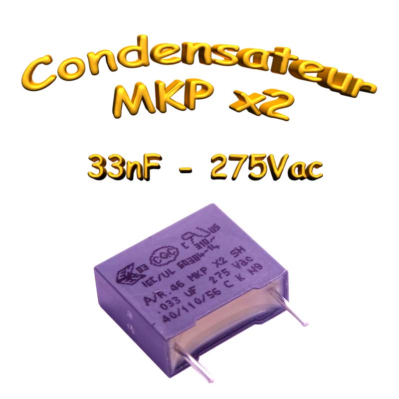 Le Condensateur polypropylène MKP x2 33nf – 0.033uf est idéal pour le filtrage d’interférence des alimentations. Mais aussi: