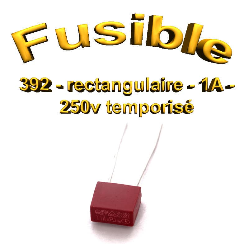 Fusible Temporisé rectangulaire 392 – 1A 250v – à souder – 8.5 x 8 x 4mm