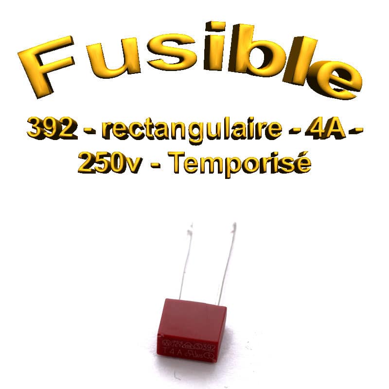 Fusible Temporisé rectangulaire 392 – 4A 250v – à souder – 8.5 x 8 x 4mm