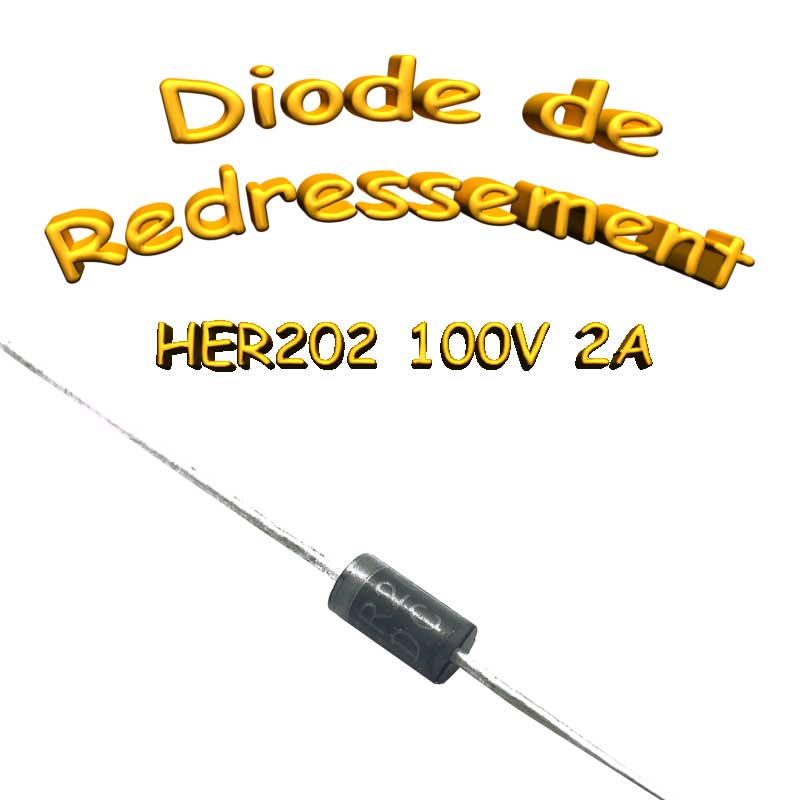 HER202 – Diode redressement – 2A – 100V – 60A – DO15