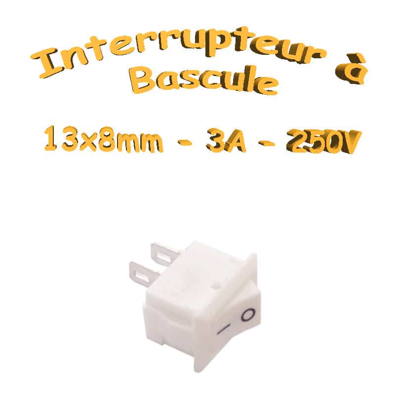 Interrupteur à bascule 3A – 250VAC – Blanc – 13x8mm