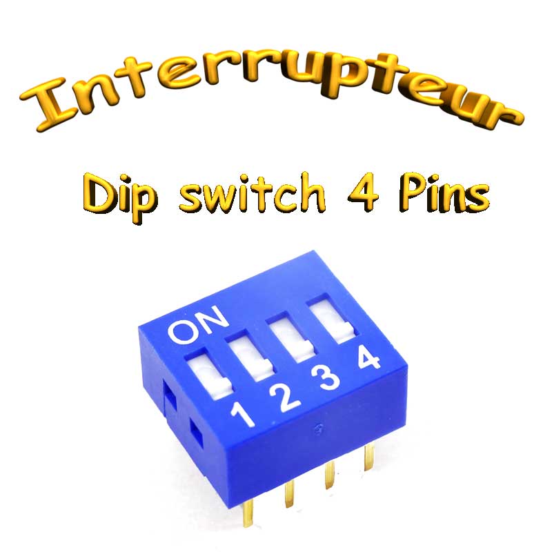 Interrupteur Dip 4 Contact – 0.05A – 12VDC – Bleu – on / off