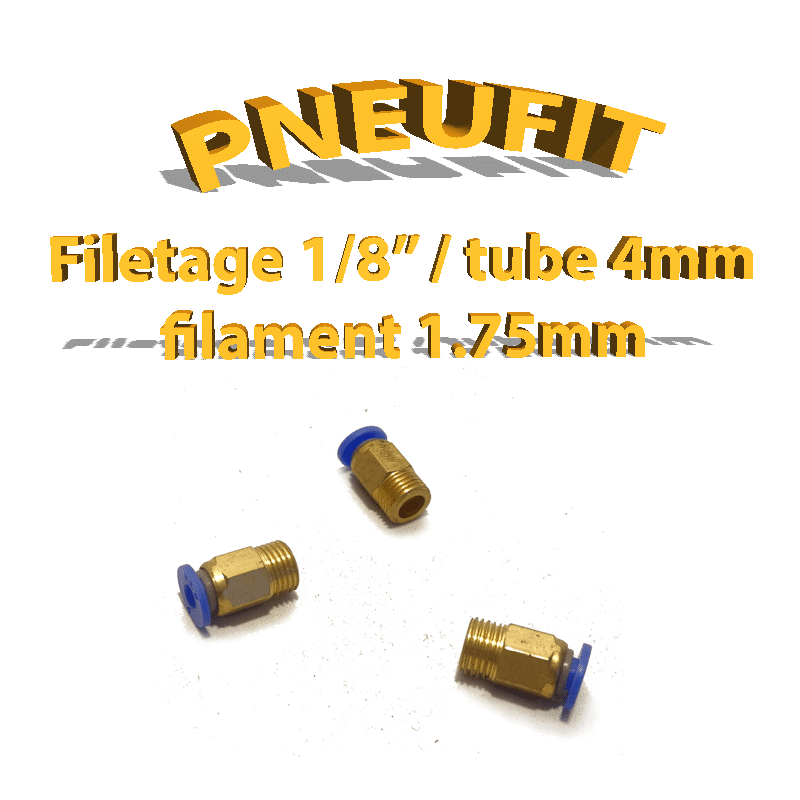 Les Pneufit bleu 1/8 – tube 4mm – Filaments 1,75mm sont des connecteur rapide pour les tubes en téflons. Ils sont à l’origine prévu pour les réseau pneumatique. Mais son utilisation de base à été détourné pour être utilisée en impression 3d. Plus particulièrement pour les feeders de type bowden!!! C’est à dire déporté, cela vous permettra de gagner en précision ou encore en vitesse de déplacement lors de vos impressions.