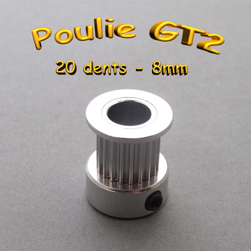 Poulie GT2 20 dent – Alésage: 8mm – Courroie 10mm