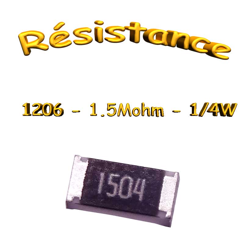 - Nom du produit: Résistance cms 1206 1.5Mohm 5% 1/4w