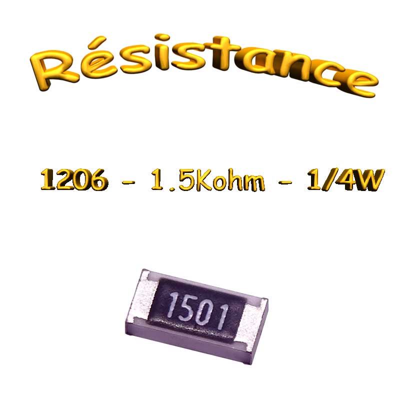 - Nom du produit: Résistance cms 1206 1,5Kohm 1% 1/4w
