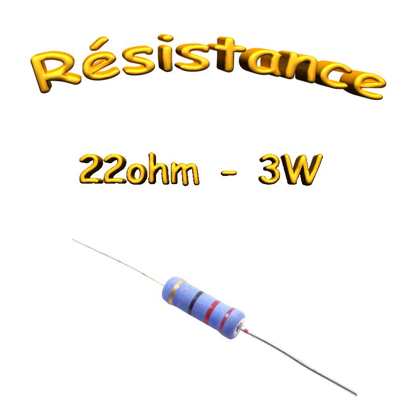Résistance 22ohms . Utilisé dans de nombreuse applications: TV, appareils audio & vidéo, appareils ménagers, systèmes de communication, … elles sont en plus très facile à souder.