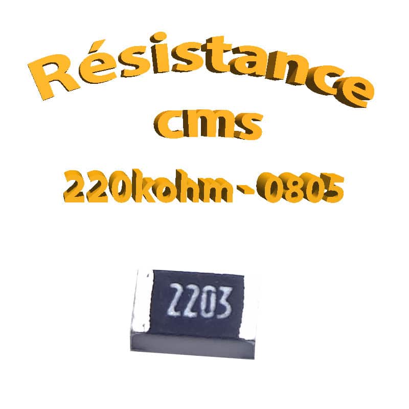 • Nom du produit: Résistance cms 0805 220kohm 1% 1/8w