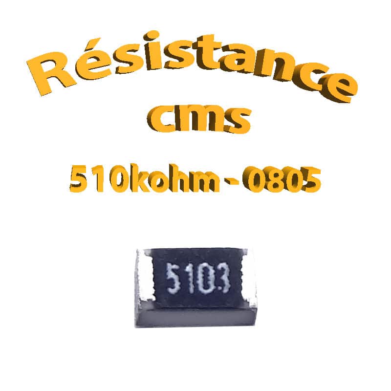 • Nom du produit: Résistance cms 0805 510kohm 1% 1/8w