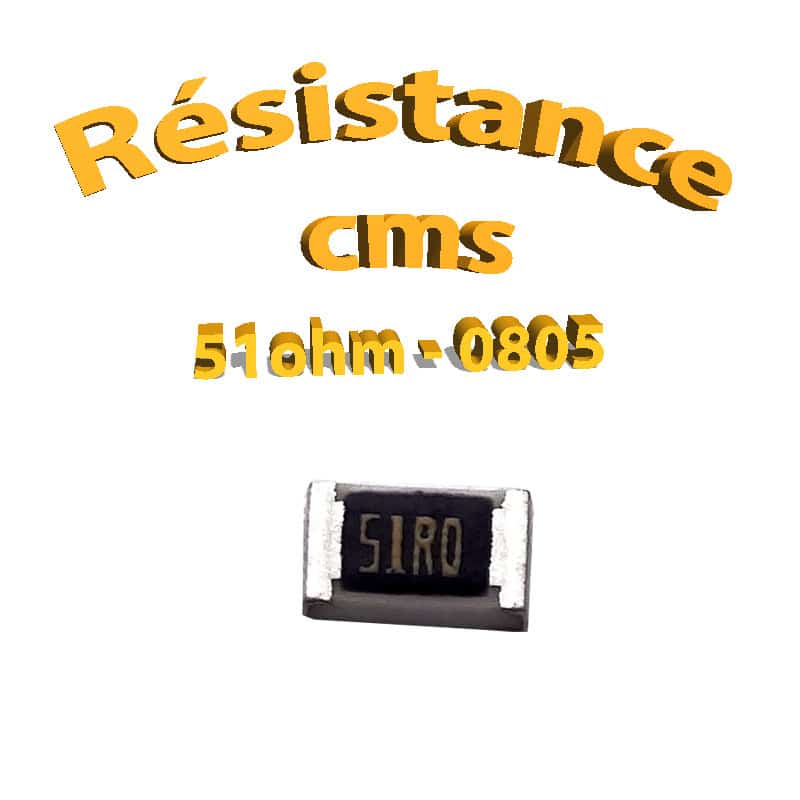 - Nom du produit: Résistance cms 0805 51ohm 1% 1/8w
