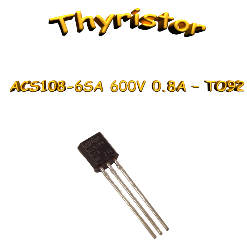 Thyristor de type commutateur CA ; tension maximum 600 V ; courant RMS maximum 0,8 A ; courant de gâchette de 10 mA ; boîtier TO-92.